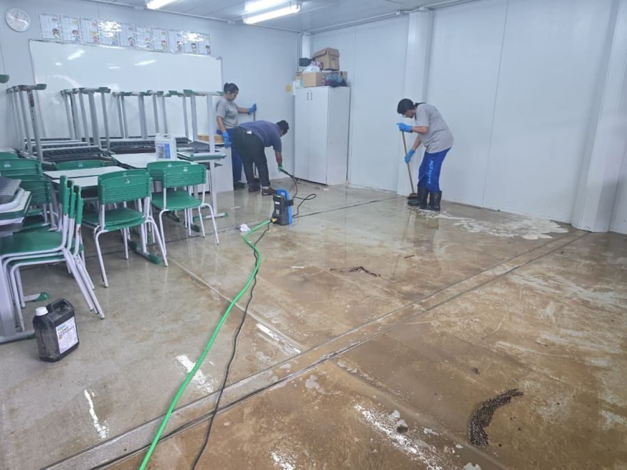 As equipes da Secretaria, em conjunto com os demais órgãos municipais, estão atuando de forma intensiva na remoção de resíduos, limpeza dos ambientes, desinfecção dos espaços, verificação das condições estruturais e restabelecimento pleno das condições adequadas de funcionamento. Este trabalho é essencial para assegurar que o retorno às aulas ocorra em um ambiente seguro, acolhedor e apropriado para o processo de ensino e aprendizagem.