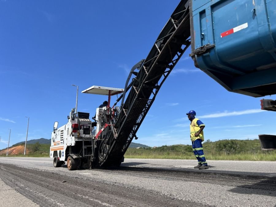 Na sequência, será realizado o recapeamento asfáltico, com aplicação de nova camada de concreto betuminoso usinado a quente (CBUQ), proporcionando maior regularidade, conforto e resistência à pista.