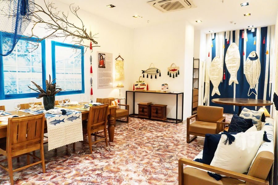 Com curadoria, expografia e mentoria do artista plástico Rodrigo Pontes, a exposição propõe um diálogo entre matéria, memória e território. As obras utilizam elementos simbólicos da cultura pesqueira — como redes, peixes e texturas orgânicas — para construir uma narrativa que transcende a representação física do lugar.